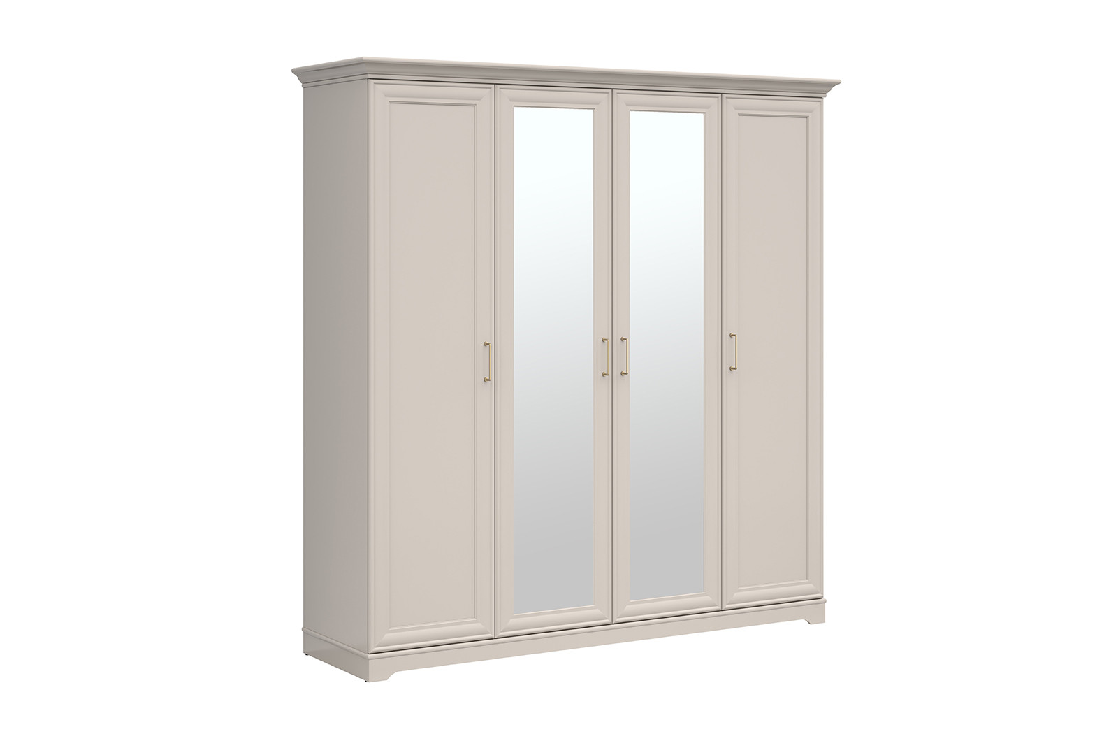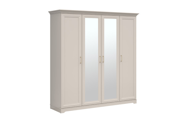 Със своите четири врати, две от които са с огледала, този модел не само предлага обширно пространство за дрехи и аксесоари, но и визуално уголемява помещението, създавайки усещане за простор и светлина.