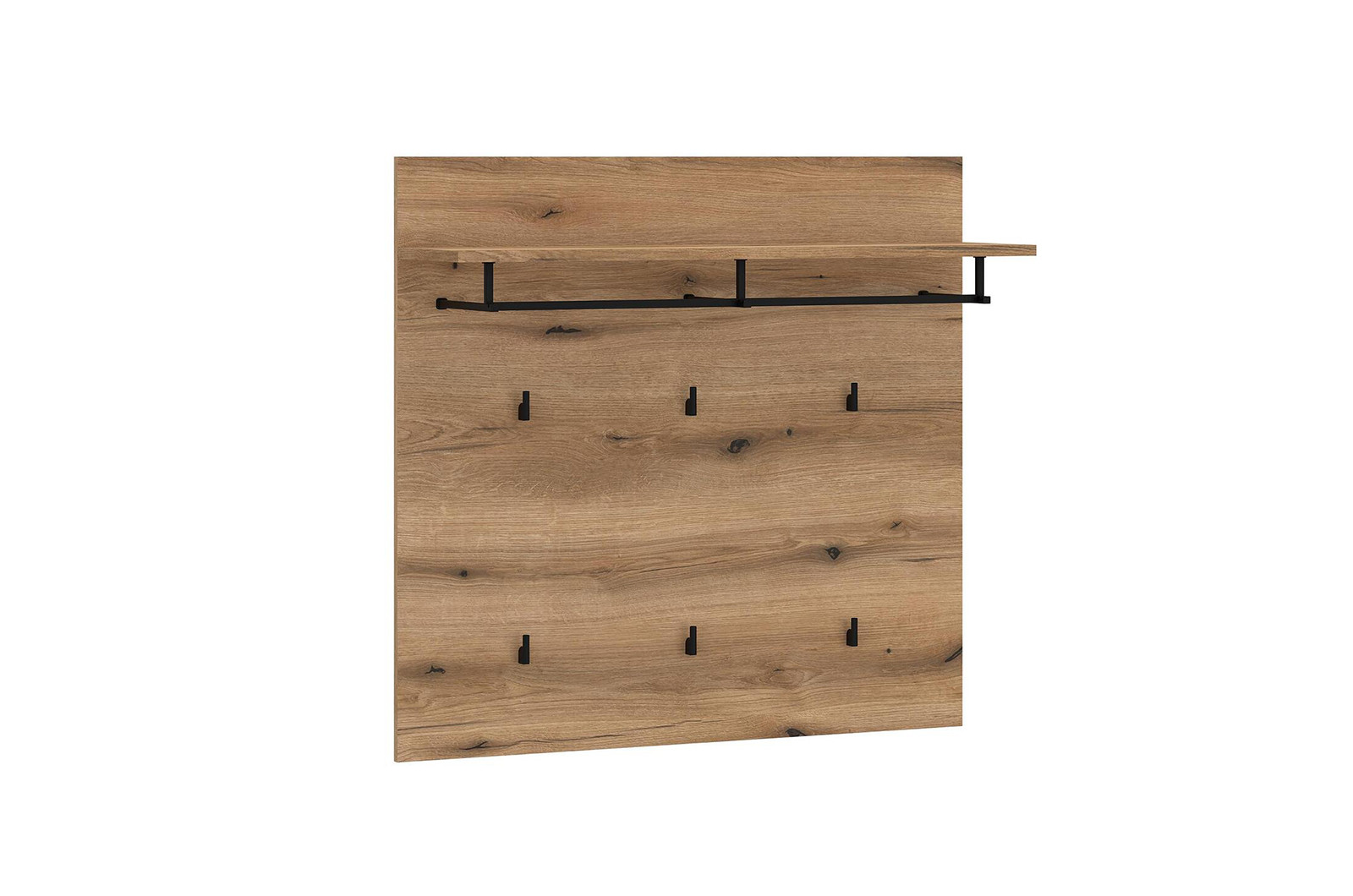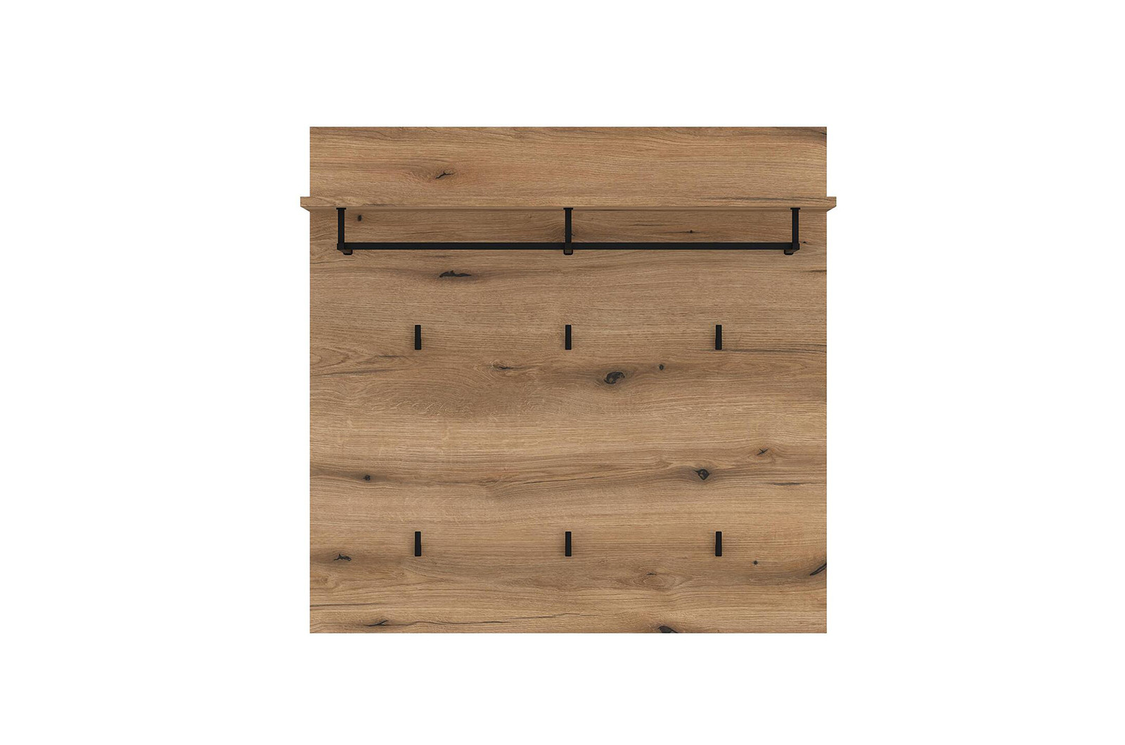 Паното е оборудвано със здрави и удобни метални закачалки в черен мат, които създават лек, съвременен контраст и гарантират сигурно съхранение на Вашите якета, палта или чанти. Паното е достатъчно компактно за малки коридори, но предлага нужната функционалност.