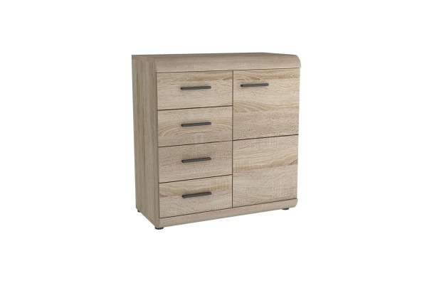 Предлага четири функционални чекмеджета с ролкови водачи и странична вратичка с вътрешен рафт, които осигуряват щедро пространство за подреждане на различни вещи.