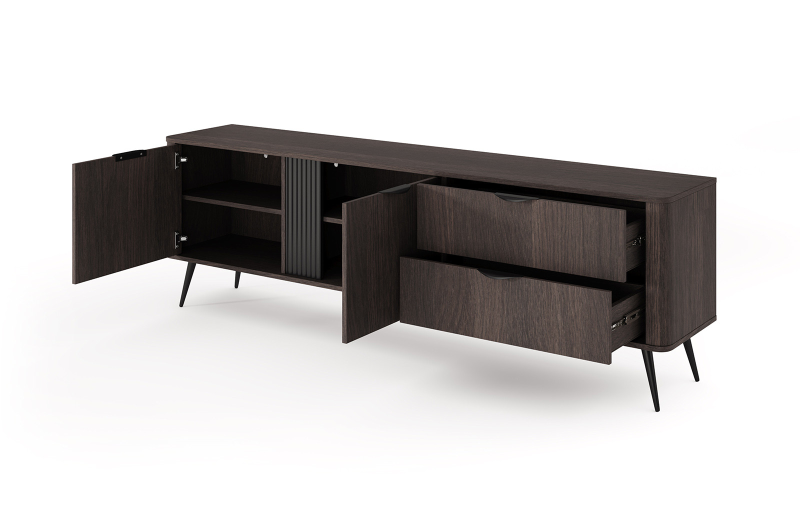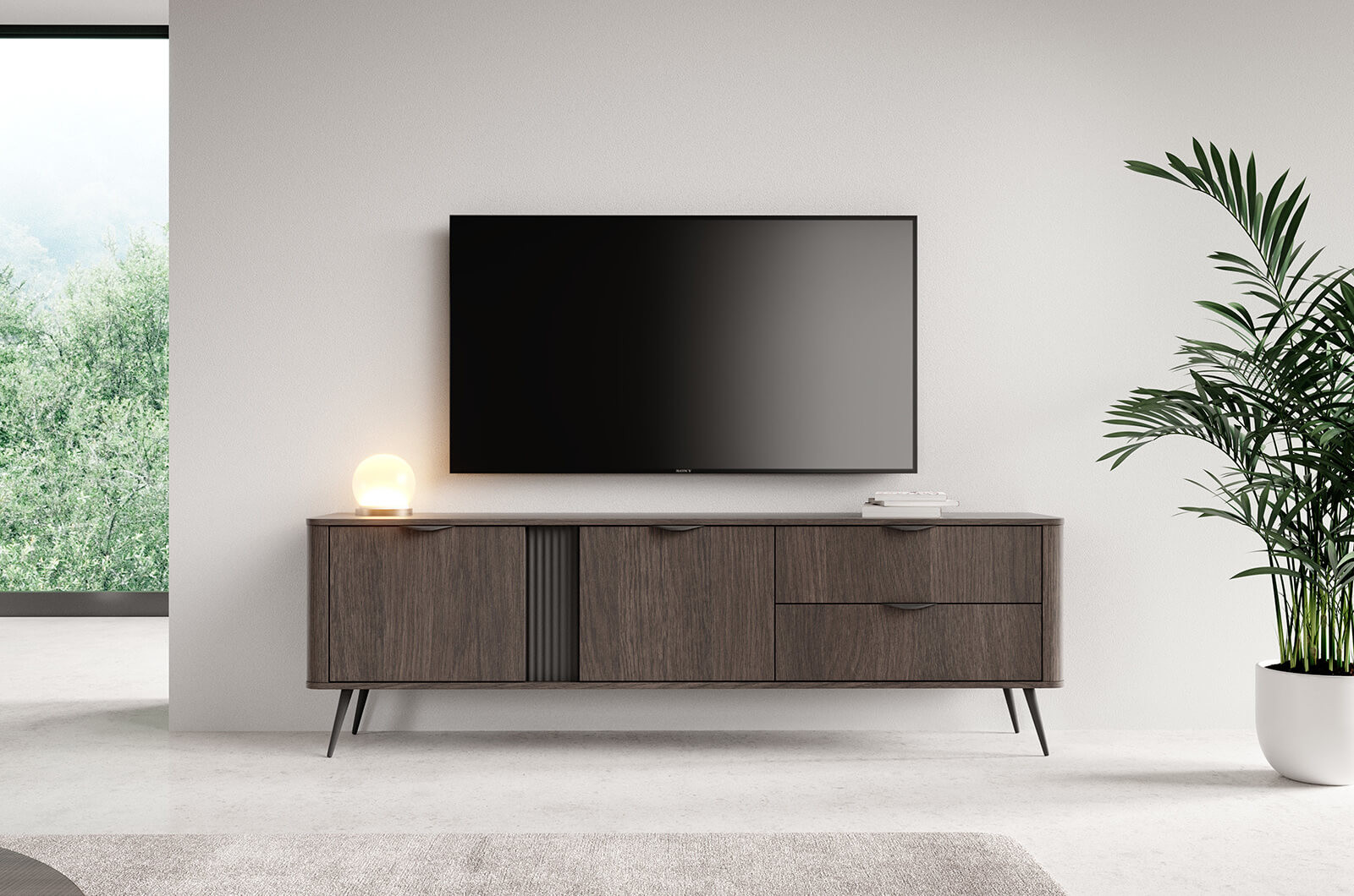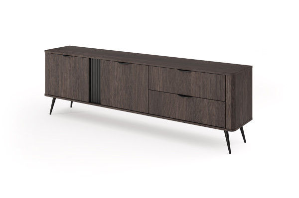 Тв шкаф 195 2D2S разполага с две врати и две чекмеджета, осигурявайки баланс между открито и затворено пространство. Комбинирайте с други мебели от серия Veris, за да създадете хармоничен и завършен интериор!