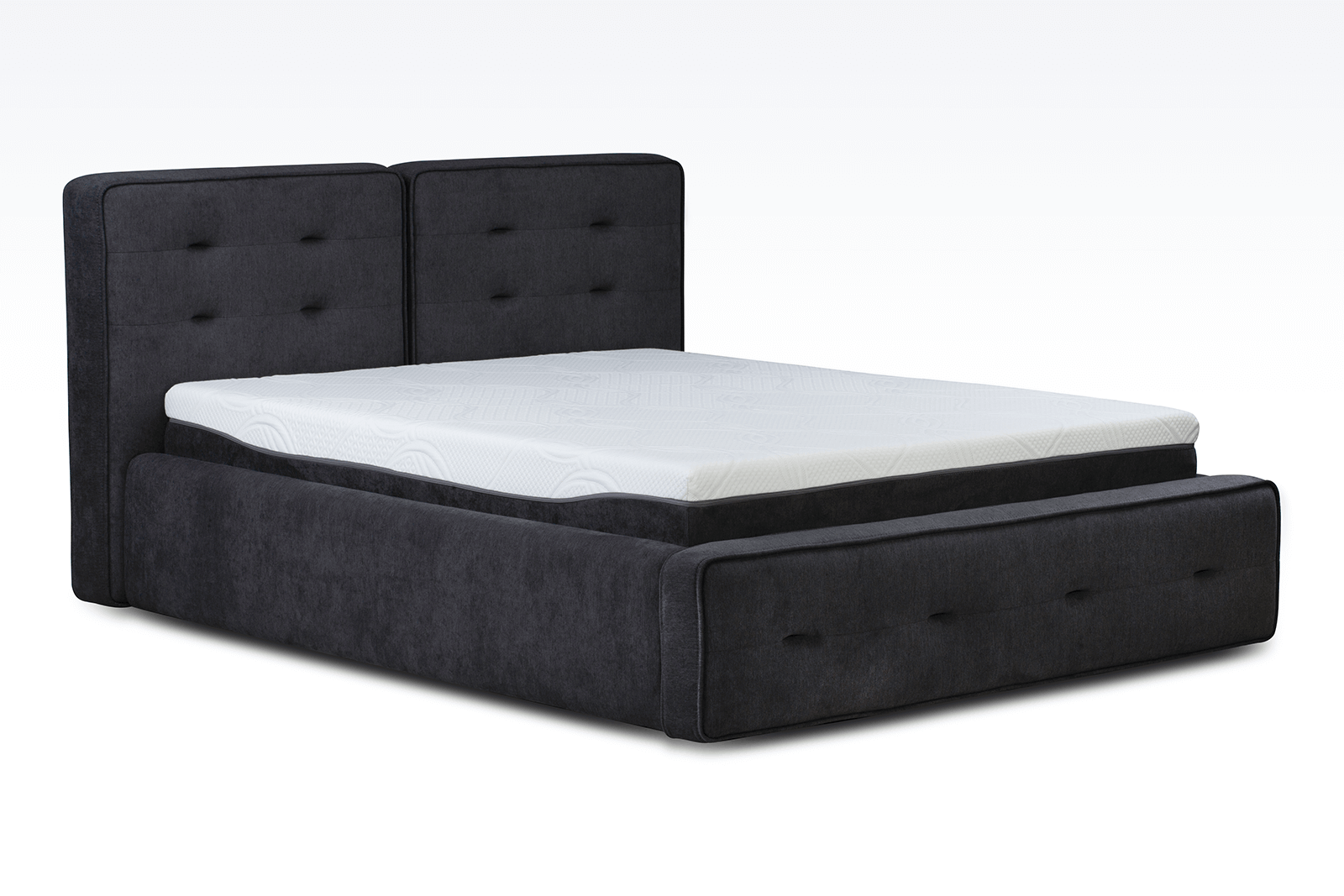 LOREYN е тапицирана спалня с висока, мека табла за максимален комфорт при облягане. За удобство е монтиран и амортисьорен механизъм за лесно повдигане. Под нея е обособена голяма ракла за съхранение на дрехи и вещи. Обемната мека табла е тапицирана с мебелна дамаска, и допринася за комфорта и удобството при ползване. Предлага се с опция за покупка в комплект на двулицев дизайнерски матрак с дебелина 22 см. Матракът е с висока плътност и е с добавен слой Мемори пяна. Нежният калъф с цип способства за поддържане на добра хигиена чрез проветряване или изпиране. Спалня LOREYN може да се поръча с размер на матрака 90/200, 140/200, 160/200 и 180/200 и с дамски и цветове по Ваш избор.