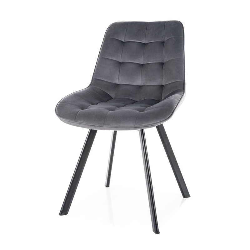 Съчетавайки луксозна кадифена тапицерия с модерна метална основа, този модел служи не само като функционално място за сядане, но и като дизайнерски акцент в интериора. Столът може да се върти на 180°.