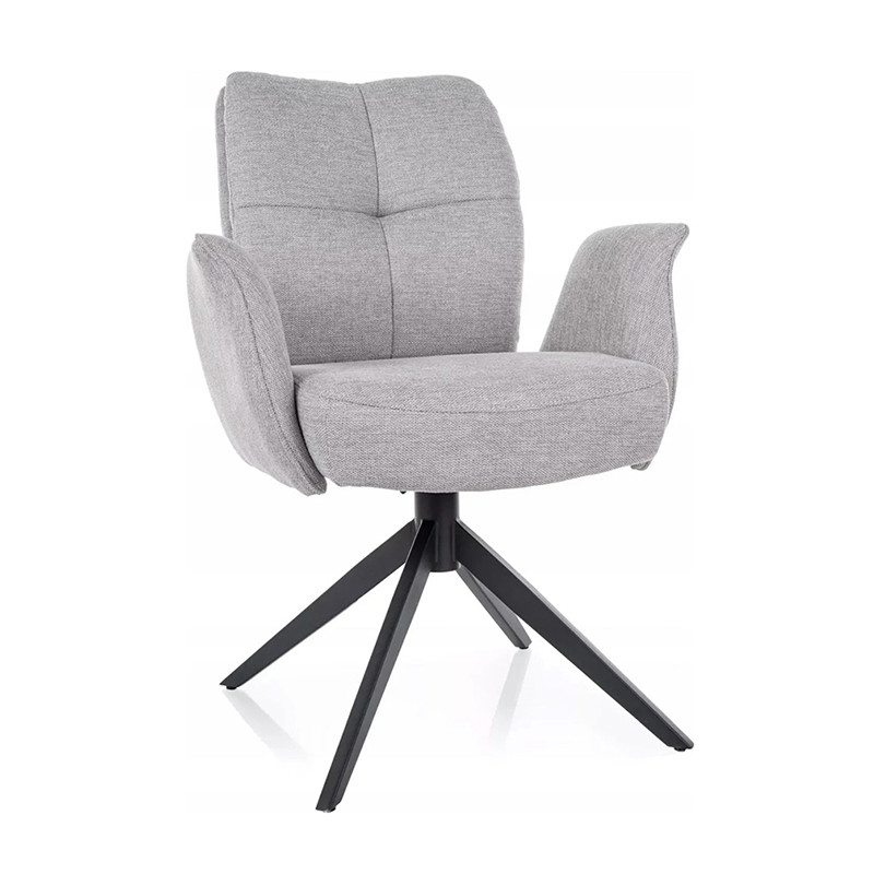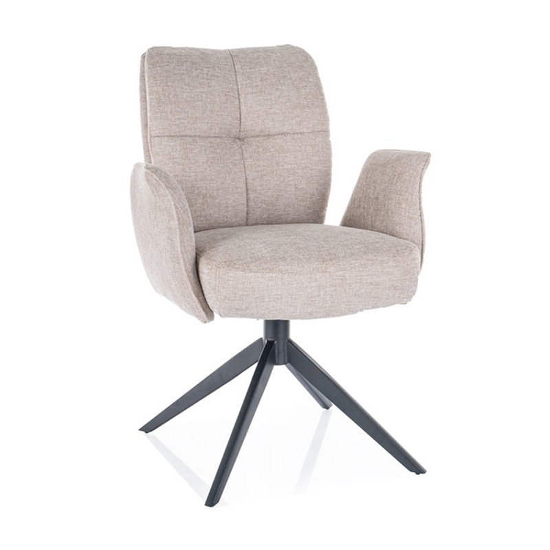 Формата на Трапезен стол Wing Brego е с елегантно извити подлакътници – те придават изящна линия, която прави стола не просто практично място за сядане, а стилен елемент във вашия интериор. Черните метални крака създават стилен контраст със светлата тапицерия, осигурявайки стабилност и устойчивост. Столът може да се върти на 180°.