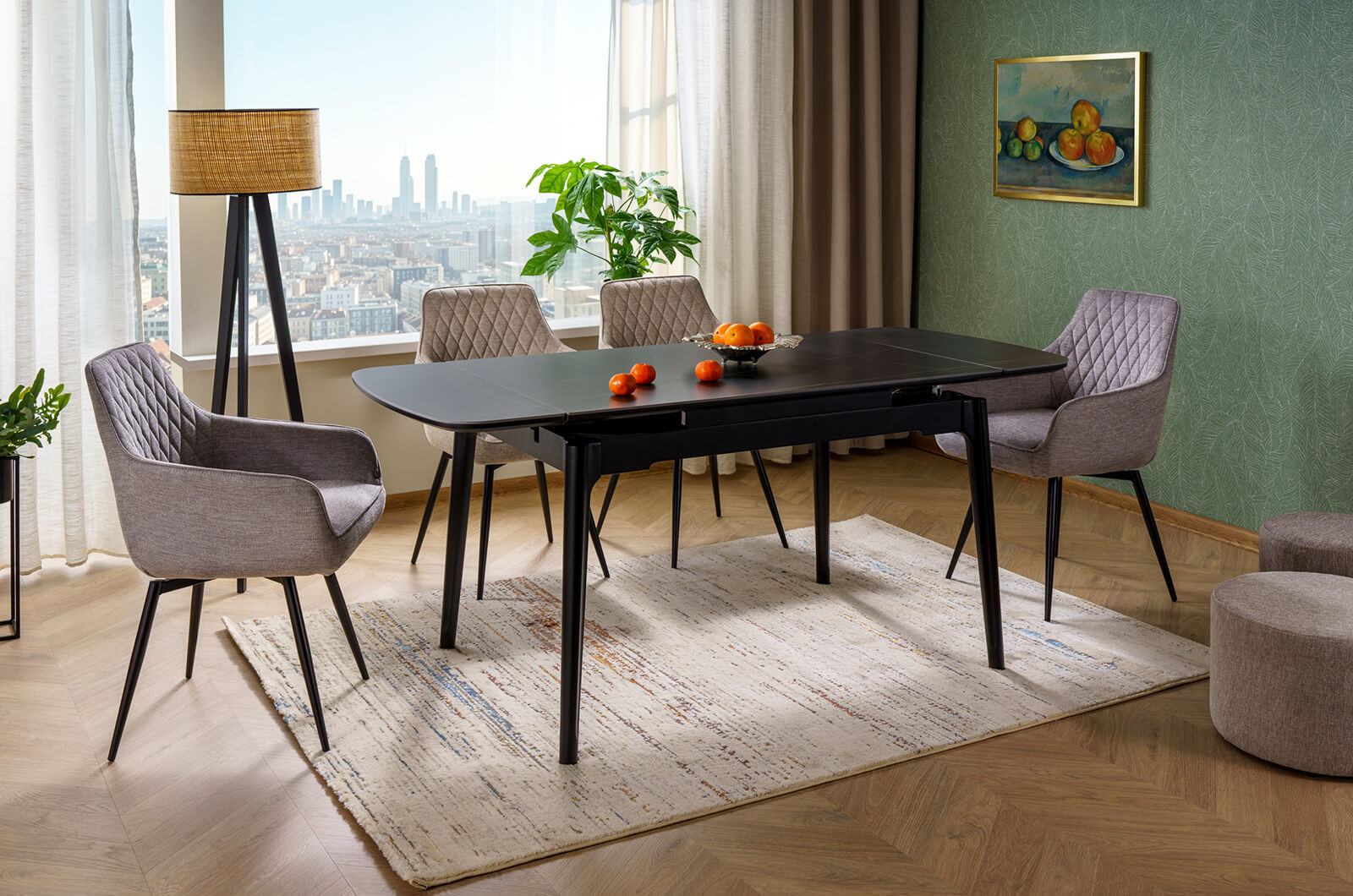 Описание: | Описание: Трапезна маса Sento е стилно решение за трапезария, която иска да комбинира изтънчен дизайн, гъвкава функционалност и качествена изработка. При нужда се разтяга до 180 см, осигурявайки достатъчно пространство за гости или по‑големи събирания.Арт. номер: 581170930 | Описание: Трапезна маса Benton е изработена с красив и модерен дизайн. Благодарение на функцията за разтягане от двете страни, няма да се притеснявате дали ще можете да посрещнете гостите си спокойно. Със своя семпъл и модерен дизайн, тя лесно ще се съчетае с всеки интериорен стил. Арт. номер: 581170808 | Описание: Трапезна маса Torino e с елегантна, но същевременно несдандартна визия. С правоъгълен плот и интересна основа, ще бъде акцент във Вашата кухня или трапезария. Разтегателният механизъм позволява да бъде удължена според Вашите нужди. Арт. номер: 581170790 | Описание: Трапезна маса Espero е с красив и елегантен дизайн. Акцентът на масата, е нейната основа, която играе ролята на единствен крак. Ако ви е необходимо повече място на трапезата, бързо и лесно може да разтегнете Espero с помощта на удобния механизъм до цели 180 см. Модерна маса, за трапезария или кухня, която създава впечатление от пръв поглед. Арт. номер: 581170794 |